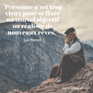 Personne n’est trop vieux pour se fixer un nouvel objectif ou réaliser de nouveaux rêves. Et si vous osiez réussir avec une Formation Création d'Entreprise au TOP ? Confirmer mon envie et trouver mon idée Oui je veux ! DECIDER Construire mon projet d'entreprise de A à Z Oui je veux ! PREPARER Doubler mes ventes grâce au web et à la communication Oui je veux ! VENDRE Passer un cap : ventes, financement... Oui je veux ! GRANDIR Navigation de l’article Personne n’est trop vieux pour se fixer un nouvel objectif ou réaliser de nouveaux rêves. Guy Vous pourriez aussi apprécier ces dossiers : 3 Idées pour augmenter votre Chiffre d’Affaires ! Comment réussir votre plan de communication client ? Comment valoriser le capital humain par un apport en industrie ? Donnez votre avis, partagez votre expérience ou vos ressentis !Annuler la réponse.
